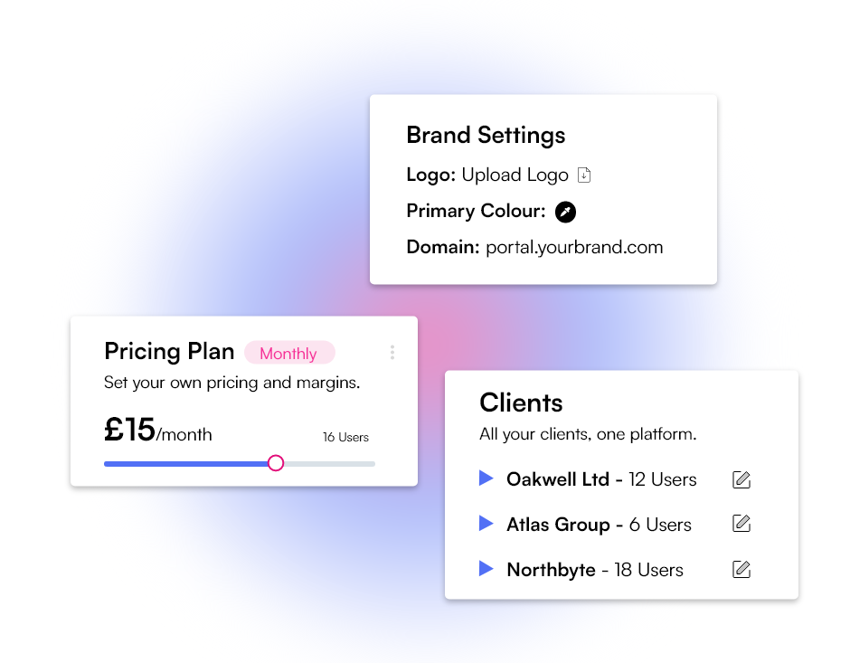 Elevale’s reseller model is designed to give you complete commercial freedom. You control how the platform is positioned, packaged, and priced - ensuring it aligns perfectly with your services and client strategy.